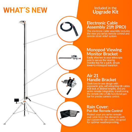 A real-life transformer! This 2-in-1 system can quickly transform from a tripod tower to a portable monopod, offering the perfect balance of quality, stability, and portability-built to do it all. This model features an industrial-grade carbon fiber telescopic pole. More compact than the Air 21, with all the same powerful features.