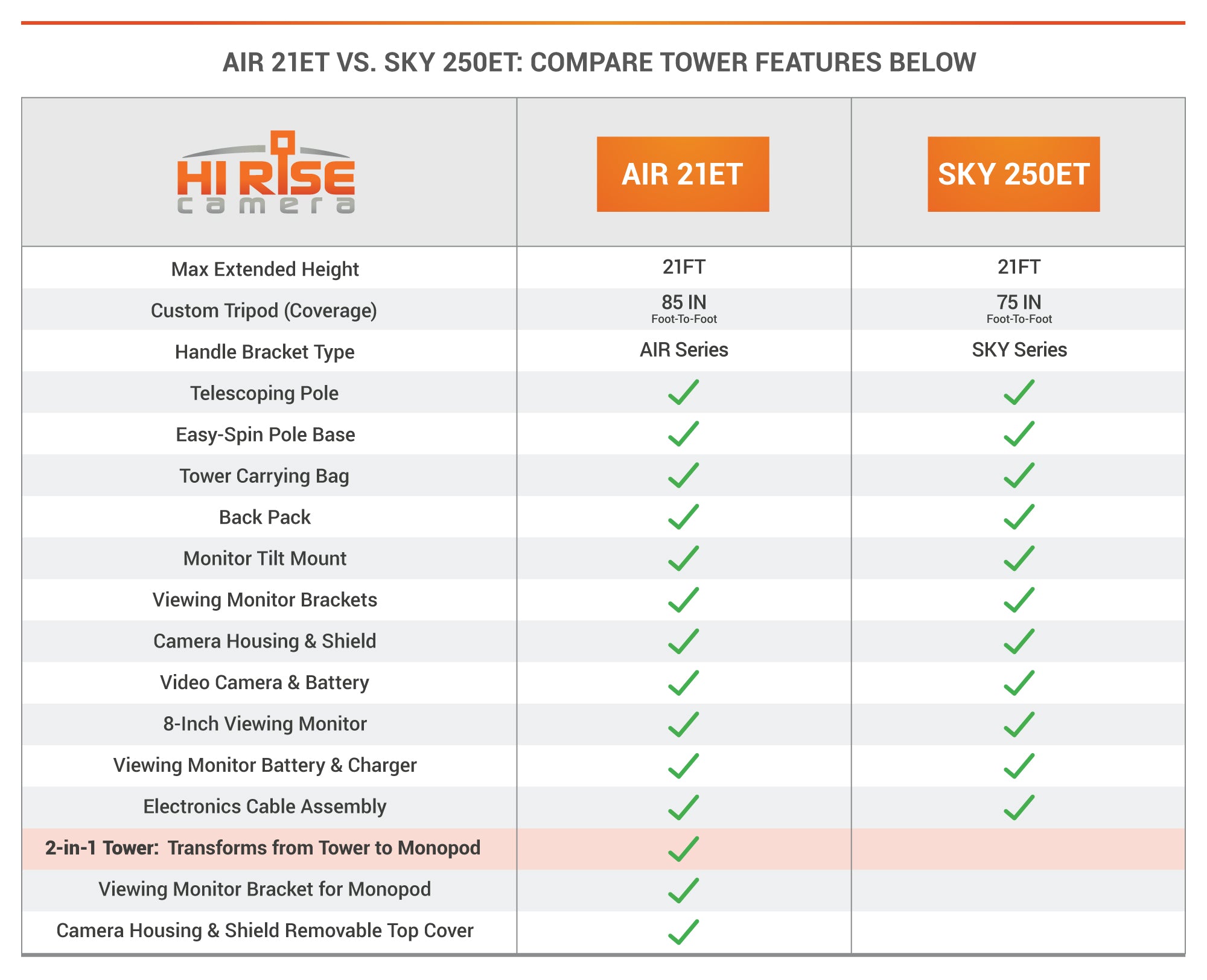 A real-life transformer! This 2-in-1 system can quickly transform from a tripod tower to a portable monopod, offering the perfect balance of quality, stability, and portability-built to do it all. More compact than the Air 21, with all the same powerful features.